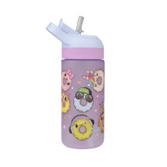 Botella con tapa diseño infantil de 500ml, libre de BPA, material titan, para bebidas frias y calientes, tapa anti derrame, agarre de silicona e incluye pitillo.